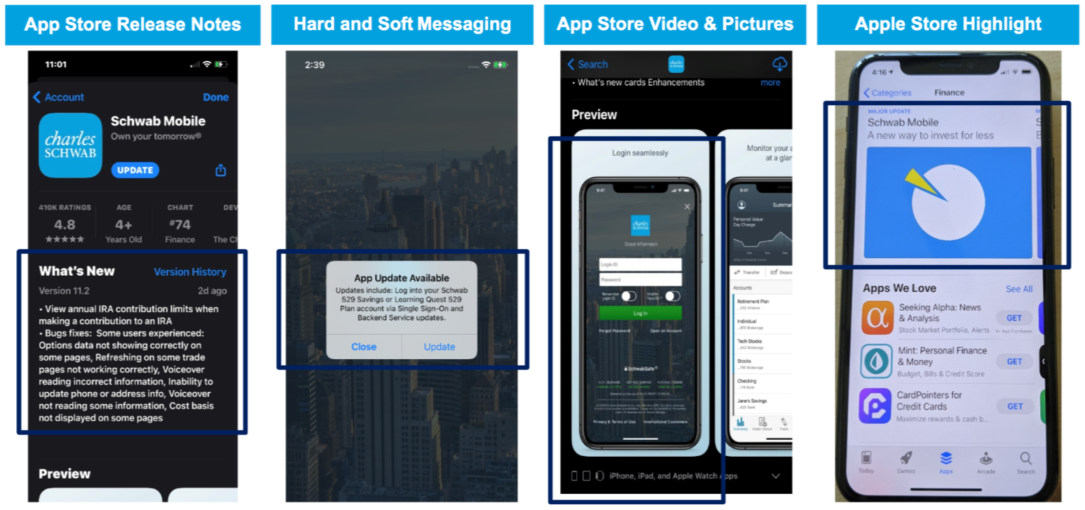 - Prior to releasing an app update, Schwab did not have a comprehensive plan in place to achieve it, measure it, and communicate it.