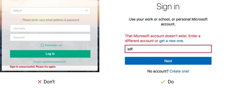 It’s not enough to write that something went wrong. Show the users the way how to fix it as soon and easy as possible. For example, Microsoft describes what’s wrong and provides a solution in the error message so you can immediately fix this issue.